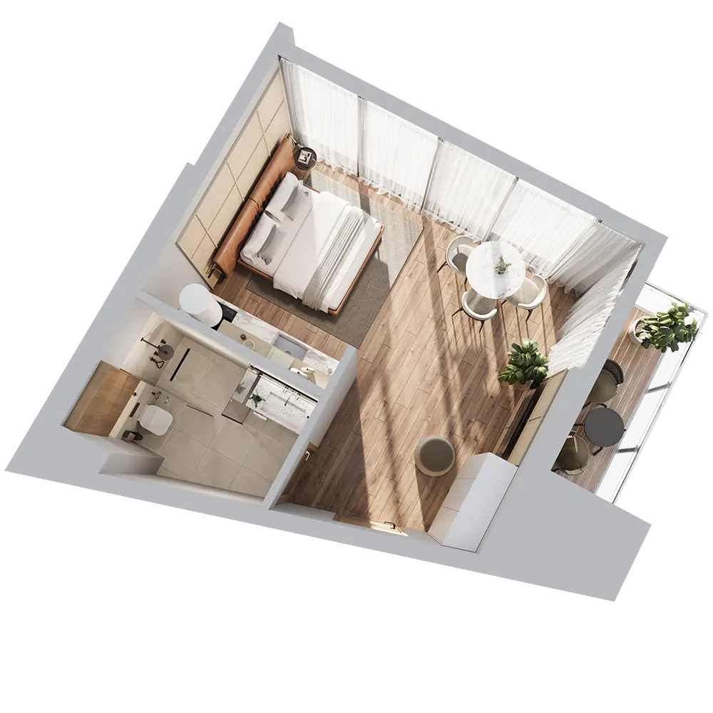 A city-view apartment at OKTO ART HOUSE offers a vibrant urban lifestyle combined with modern comfort. From your balcony, panoramic views of Batumi’s dynamic cityscape unfold, letting you enjoy the energy of the city while relaxing in a stylish and contemporary interior.